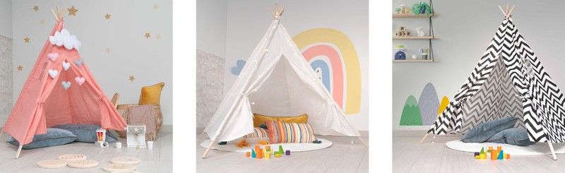 Av denna anledning är tipi för barn gjorda av paulownia-trä och polyester- och bomullstyg idealiska. Dess material erbjuder inte bara olika förnimmelser som fungerar som stimuli, utan det är också en funktionell produkt eftersom den är vikbar.