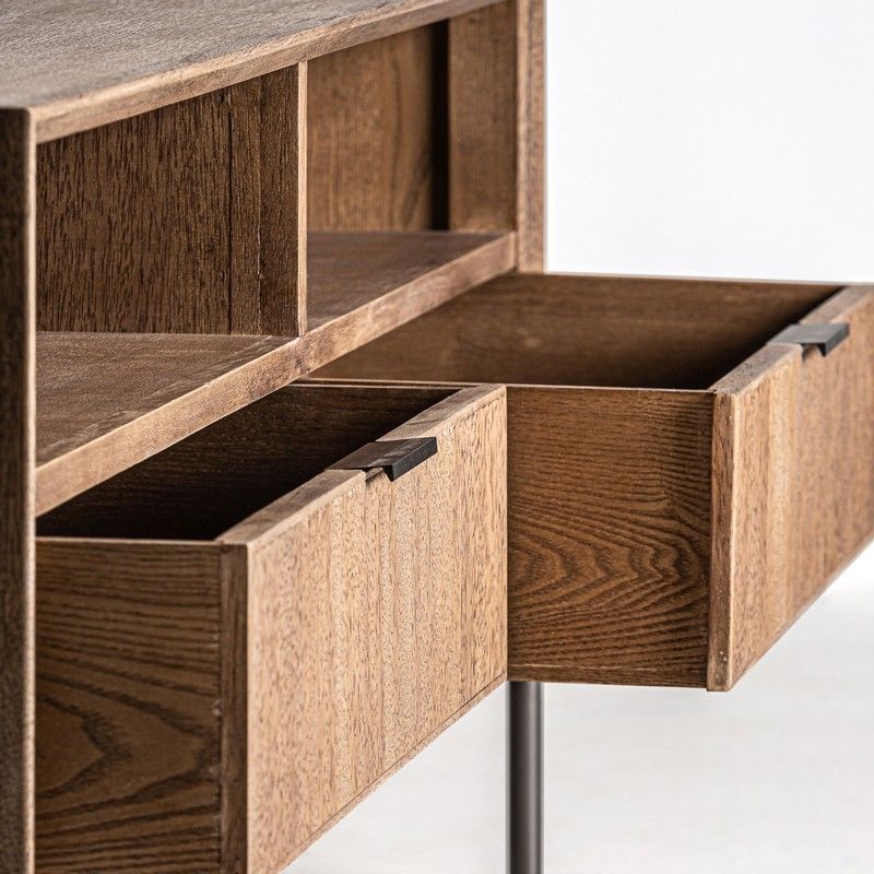 Szafka RTV Meira z drewna jodłowego, 140x44x56 cm Jaka jest wysokość nóżek , Czy 44 to głębokość szafki, Jaka jest wysokość otwartej półki?